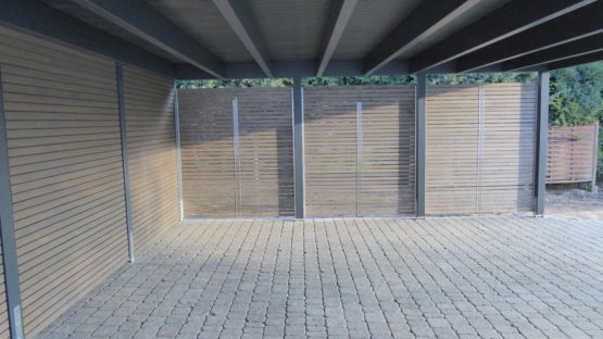 Für die Dacheindeckung des Flachdachcarports verwenden wir Stahltrapezbleche auf Wunsch auch mit Antidroppvlies. Die Bleche sind in verschiedenen Farben erhältlich .